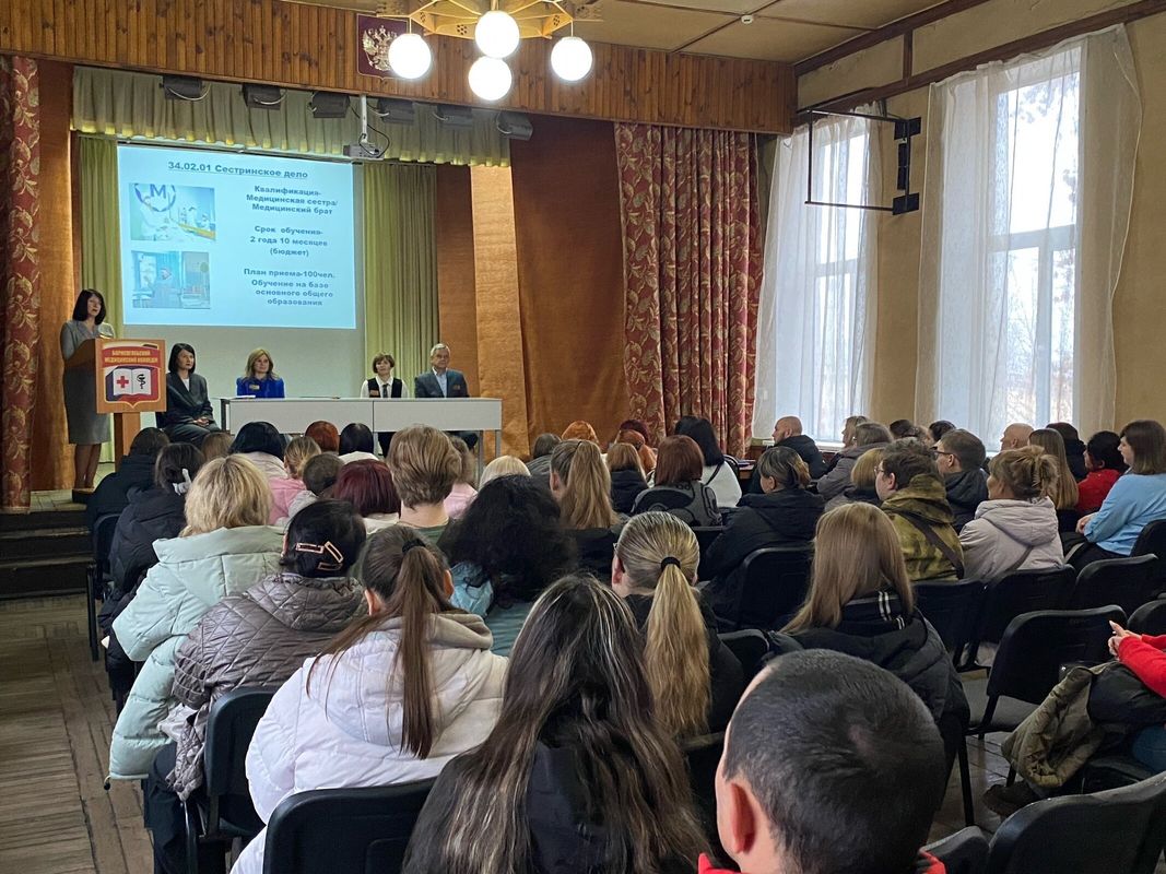 В своём выступлении директор колледжа Михеева Любовь Валентиновна обратила внимание на проблему кадрового дефицита среднего медицинского персонала в регионе, решить которую возможно только за счёт целевого обучения. В ходе оживлённой беседы потенциальные абитуриенты и их родители узнали о единой цифровой платформе в сфере занятости и трудовых отношений «Работа в России», на которой можно ознакомиться с предложенными вакансиями, и получили пошаговую инструкцию по заключению договора о целевом обучении. Также гостям мероприятия была представлена подробная информация о специальностях