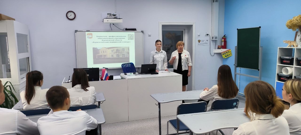 В преддверии Дня открытых дверей в Борисоглебском медицинском колледже стартовала акция «Профориентационный десант», призванная помочь школьникам сориентироваться в будущем и правильно выбрать профессию. Более восьмидесяти пяти студентов колледжа посетили свои родные школы, расположенные в Воронежской области, и рассказали обучающимся выпускных классов о Борисоглебском медицинском колледже, его истории, о специальностях подготовки, поделились личным опытом в выборе профессии и впечатлениями о своей альма-матер.