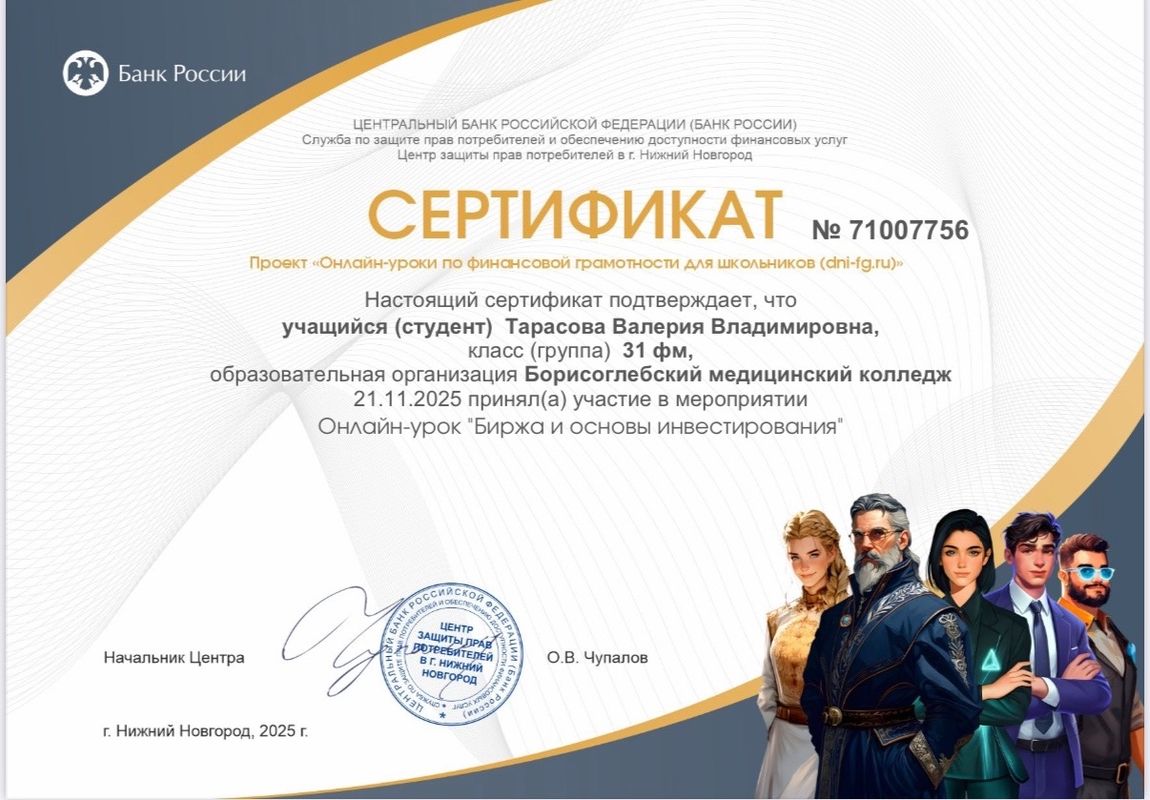 В Борисоглебском медицинском колледже состоялись уроки по финансовой грамотности в рамках сессии проекта "Онлайн-уроки по финансовой грамотности". В ходе события были освещены 29 тем от основ личного бюджета и защиты от мошенников до первых шагов в мире инвестиций